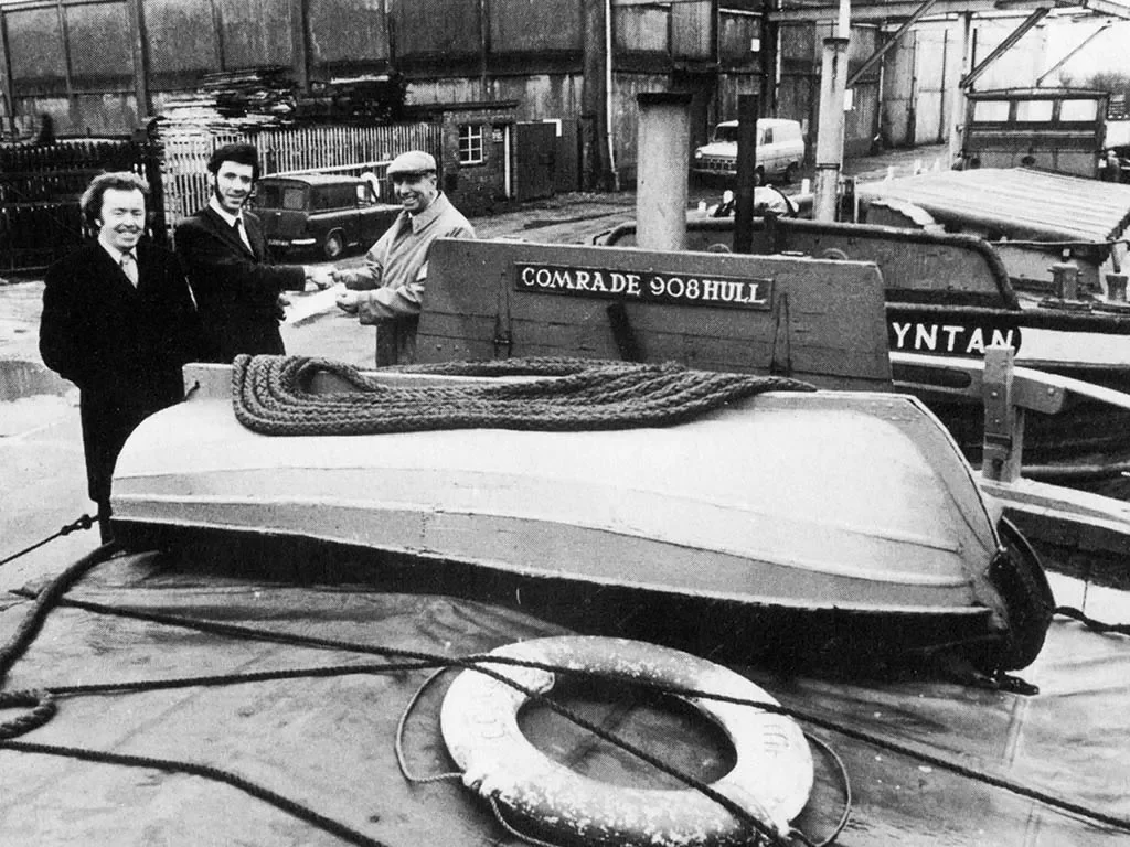 As a part of an all out effort by HKSPS members to put together enough funds to enable the purchase of their very own Humber Keel, John Hainsworth asked Fred Schofield if he would take COMRADE to the Inland Waterways Association rally at Nottingham. This was an ideal opportunity to give the Society maximum publicity and, with new paint everywhere, an exhibition on board, press and TV crews in attendance, COMRADE set off from Beverley on the afternoon of August 19. She arrived at Newark the following afternoon (below left), had an open day for the public, then continued to the Nottingham rally (below right) to join nearly 600 vessels of all kinds.